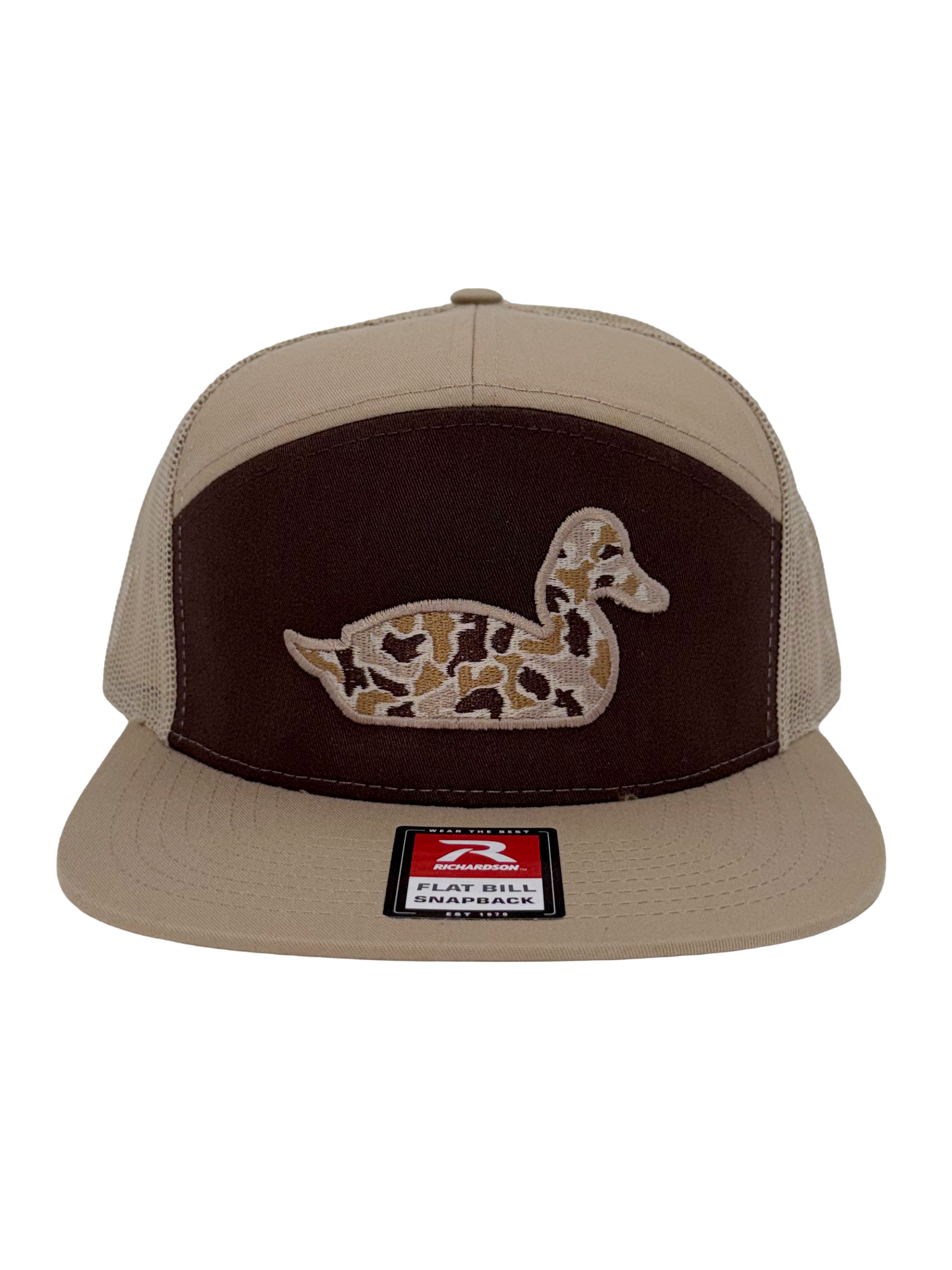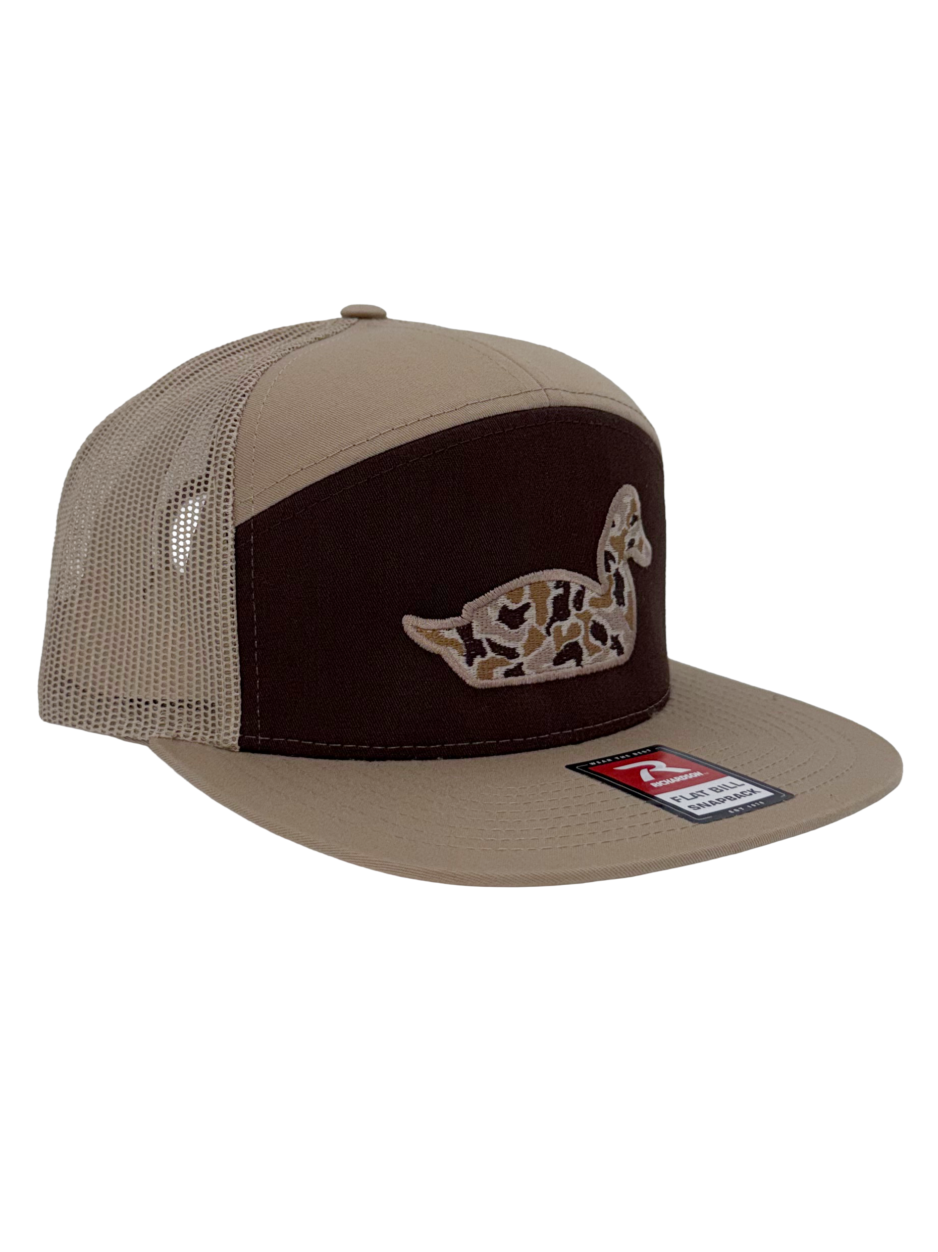 Timber Drake is built for the hunt, the hangout, and everything in between. Featuring a rugged camo filled drake silhouette front and center, this Richardson 7-panel 168P snapback combines a sharp flat bill with a classic outdoorsman’s edge.